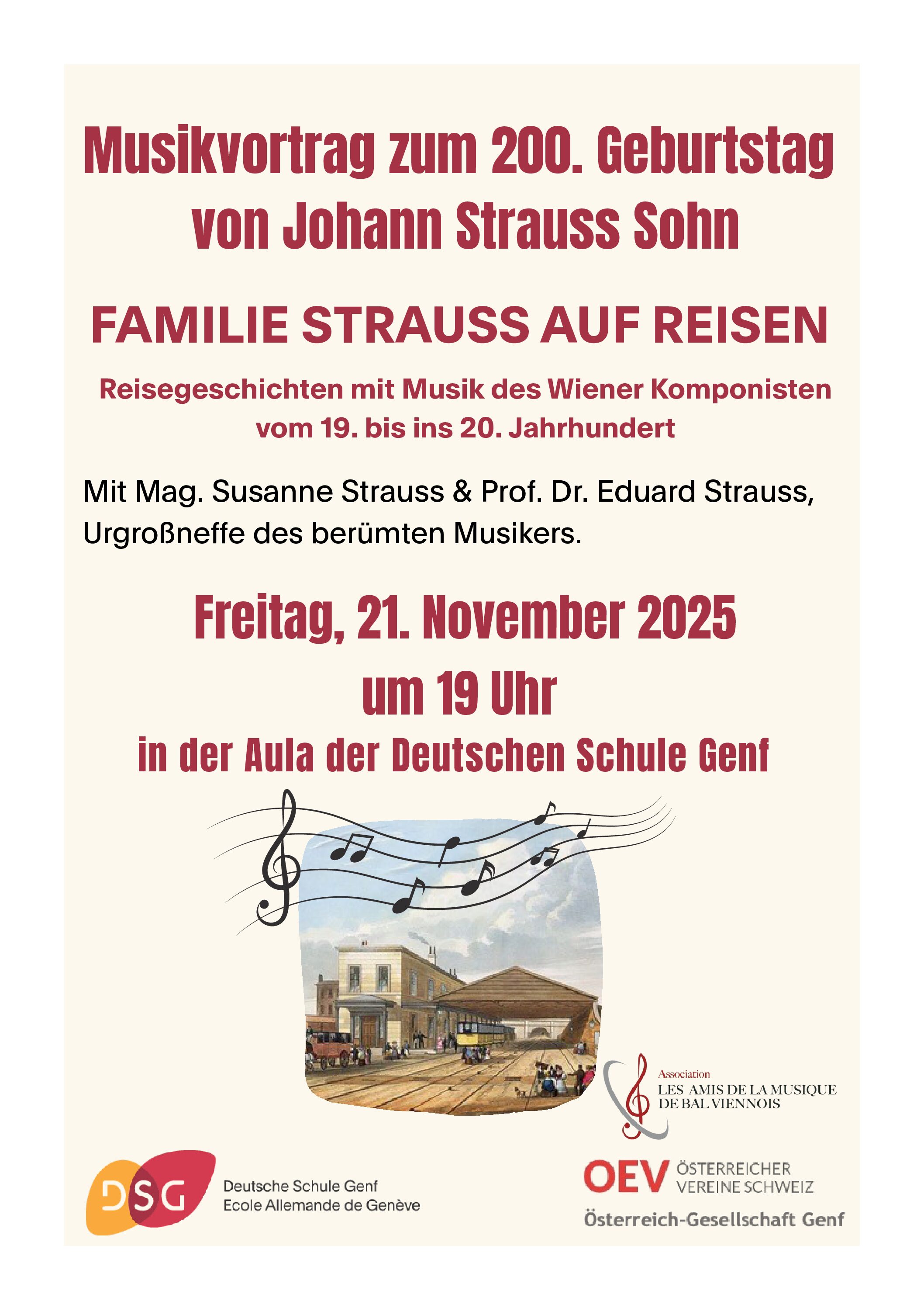 Reisegeschichten mit Musik des Wiener Komponisten vom 19. bis in 20. Jahrhundert Mit Mag. Susanne Strauss & Prof. Dr. Eduard Strauss, Urgroßneffe des berühmten Musikers.